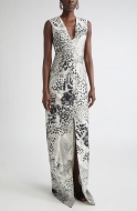 Dries Van Noten Delina Leopard Orchid Print Crushed Satin Dress_Black