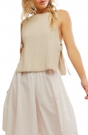Free People Lizzie Rib Side Tie Sleeveless Cotton & Linen Sweater_Summer Sand