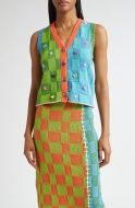 YanYan Floral Ribbon Checkerboard Sweater Vest_Blue Green