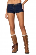 EDIKTED Ciel Belted Low Rise Denim Micro Shorts_Dark-Blue