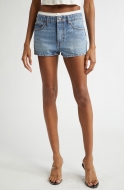 Alexander Wang Bite Logo High Waist Destroyed Hem Cotton Denim Shorts_Grey Aged/White