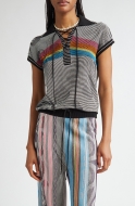 Paolina Russo Illusion Knit Lace-Up Polo_Black/ Rainbow