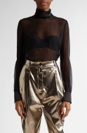 Dolce&Gabbana Sheer Mock Neck Long Sleeve Silk Top_N0000 Nero