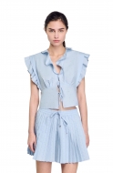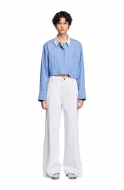 SANDRO Striped cropped shirt with rhinestone_Sky Blue