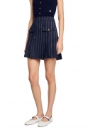 SANDRO Mini striped pleated skirt_Navy / Ecru