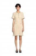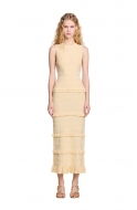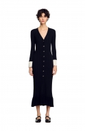 SANDRO Mini knit dress with ruffle_Black / Ecru