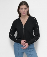 DKNY Womens Zip Front Grommet Trim Long Sleeve Cardigan