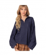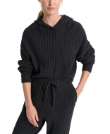 DKNY Womens Cable Knit Pullover Hooded Sweater