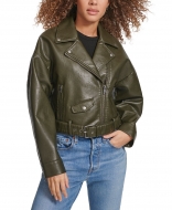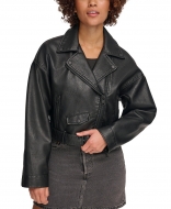 Levis Womens Faux Leather Belted Hem Moto Jacket