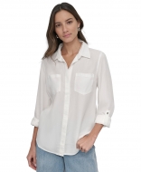 DKNY Jeans Womens Roll Tab Sleeve Button Front Shirt