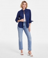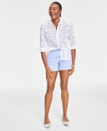 On 34th Womens Solid Eyelet Button Up Shirt