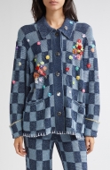 YanYan Floral Ribbon Checkerboard Knit Work Jacket_Denim