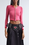 Chopova Lowena Fishnet Layered Crop Cardigan_Pink And Red