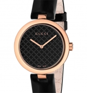 Gucci Diamantissima Leather Strap Watch 32mm_Black/ Gold