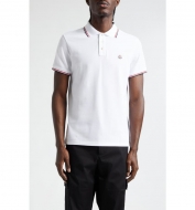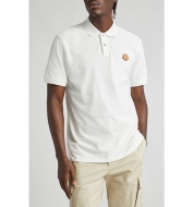 Moncler Leather Logo Patch Cotton Pique Polo_Bright White