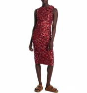 St John Evening St. John Evening Floral Geometric Bow Jacquard Dress_Cranberry Multi