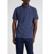 Moncler Tipped Logo Embossed Cotton Pique Polo_Navy