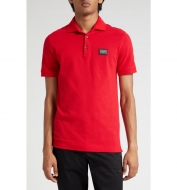 Dolce&Gabbana Logo Plate Cotton Pique Polo_Bright Red