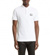 Dolce&Gabbana Logo Plate Cotton Pique Polo_White