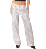 EDIKTED Jolene Metallic Straight Leg Jeans_Silver