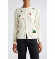 Bode Chatham Beaded Merino Wool & Cashmere Rib Cardigan_Cream