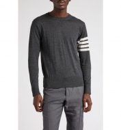 Thom Browne Mens 4-Bar Merino Wool Sweater_Med Grey