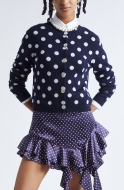 Sandy Liang Cairo Polka Dot Wool Cardigan_Navy