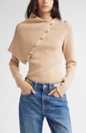 Rabanne Drape Shoulder Merino Wool Sweater_Beige