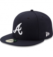 New Era Mens New Era Navy Atlanta Braves Road Authentic Collection On-Field 59FIFTY Fitte…