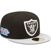 New Era Mens New Era Black/Silver Las Vegas Raiders Super Bowl XVIII Letterman 59FIFTY Fi…