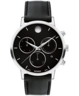 Movado Mens Museum Classic Swiss Quartz Chrono Black Leather Watch 42mm