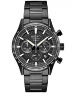 Seiko Mens Chronograph Essentials Black Ion Finish Stainless Steel Bracelet Watch 43mm