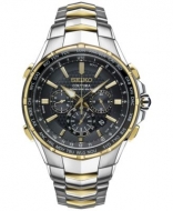 Seiko Mens Coutura Radio Sync Solar Chronograph Two Tone Stainless Steel Bracelet Watch 4…