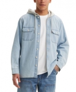 Levis Mens Relaxed Fit Hooded Denim Shirt Jacket