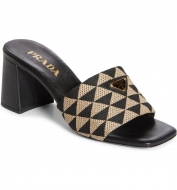 Prada Triangle Jacquard Slide Sandal_Nero Corda