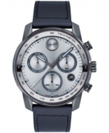 Movado Mens Bold TR90 Swiss Quartz Chronograph Black Leather Watch 44mm