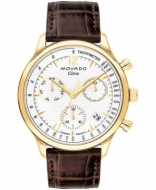 Movado Mens Heritage Circa Swiss Quartz Chronograph Brown Genuine Leather Strap Watch 43mm