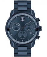 Movado Mens Bold Verso Dark Blue Ionic Plated Steel Bracelet Watch 44mm