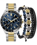 American Exchange Mens Two Tone Metal Alloy Bracelet Watch 45mm Gift Set