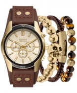 American Exchange Mens Brown Strap Watch 45mm Gift Set