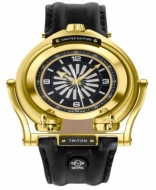 Gevril Triton Mens Swiss Automatic Black Genuine Leather Strap Watch 49mm