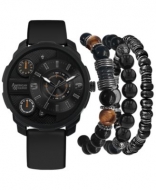 American Exchange Mens Black Rubber Strap Watch 46mm Gift Set