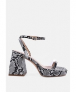 London Rag Womens Such Flirt Snake Print Triangular Block Heel Sandals