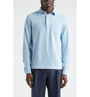 Thom Sweeney Long Sleeve Cotton Pique Polo_Light Blue
