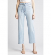 HIDDEN JEANS Belted High Waist Raw Hem Straight Leg Jeans_Light Wash