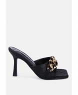 London Rag Womens Mermaid Quilted Metallic Chain Embellished Sandals