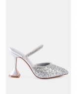 London Rag Iris Glitter Diamante Embellished Spool Heel Sandals