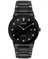 Citizen Mens Eco Drive Axiom Diamond Accent Black Ion Plated Stainless Steel Bracelet Wat…
