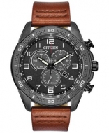 Citizen Eco Drive Mens Chronograph Brycen Chestnut Brown Leather Strap Watch 44mm