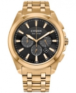 Citizen Eco Drive Mens Chronograph Classic Gold Tone Stainless Steel Bracelet Watch 41mm